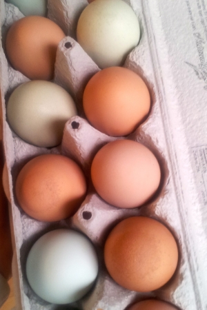 Basically, the method is to take your dye material (in this case, onion skins), put it in a pot with some water and a little white vinegar, bring it to a boil, and then simmer it for 30 minutes. Strain out the dye material, let the liquid cool to room temperature, and then boil your eggs in the dye bath for about 20 minutes. If the color is not as deep as you would like it, refrigerate the eggs in the dye bath for an hour or two until the desired color.